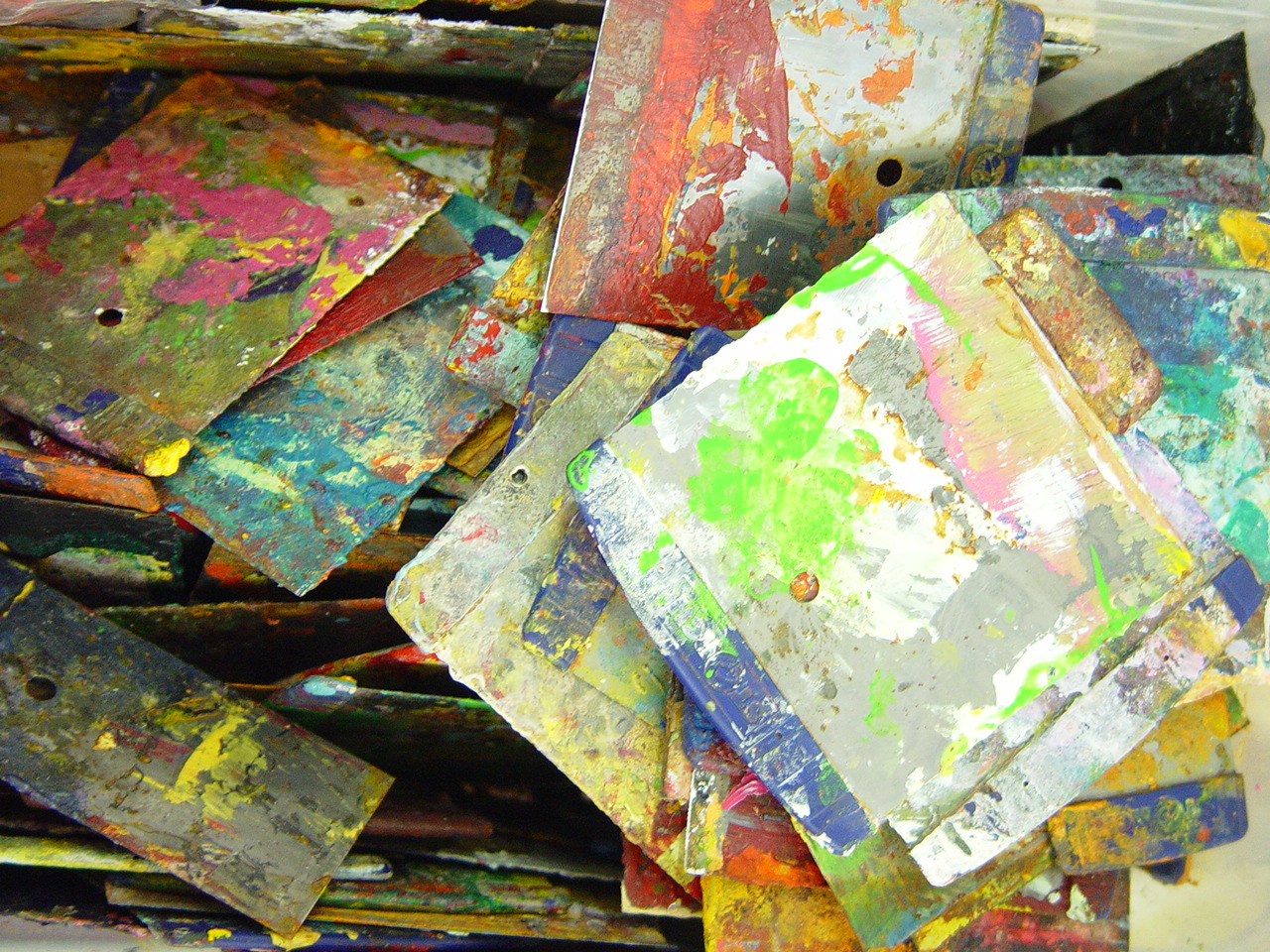 Verwenden von Strukturpasten, Ölsticks, Kreiden, Kleister, Kohle, Wachs, Papier und vielem mehr